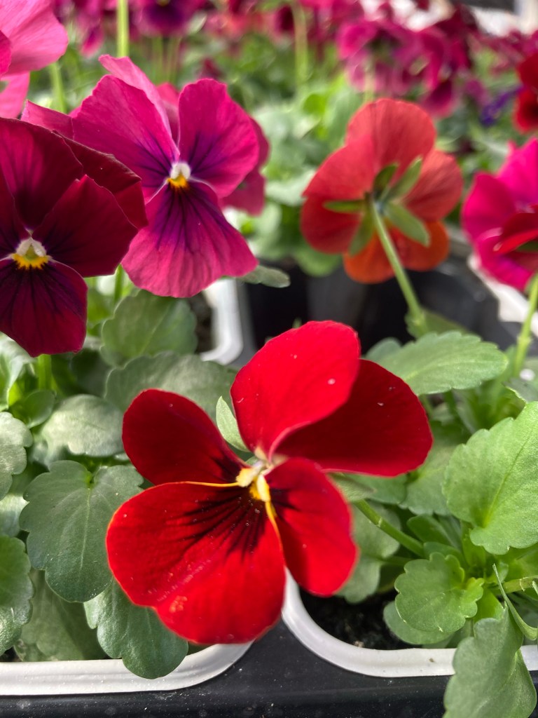 Vi har många söta penséer både ute och i växthuset 🌺