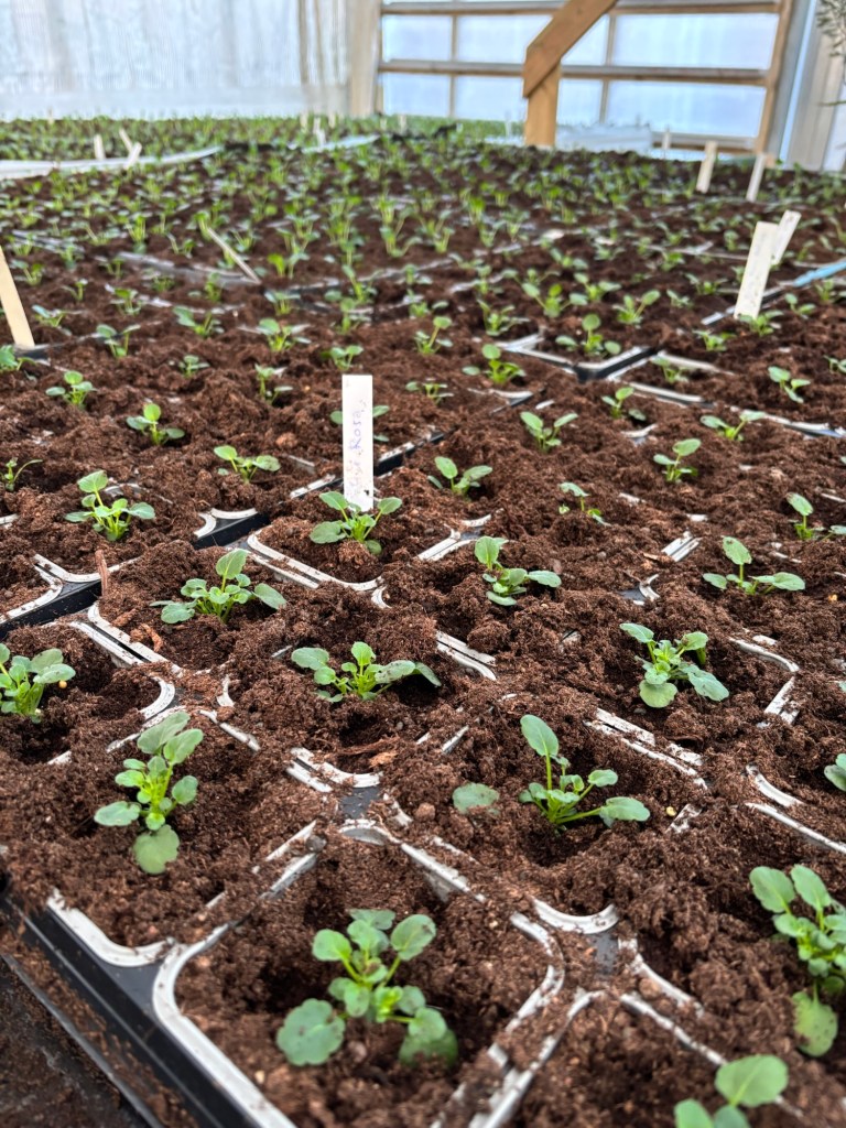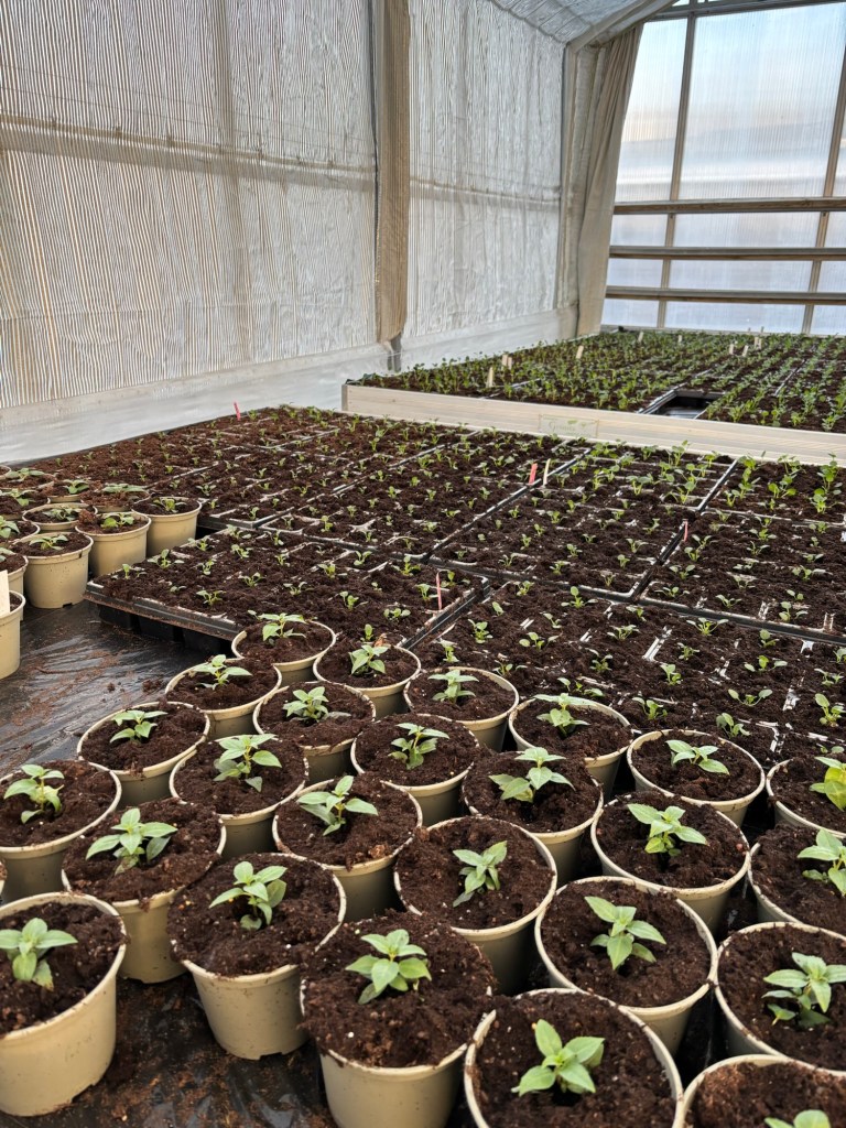 Det är på gång med plantering av vår och sommarblommor i växthuset. Vi kan inte sälja dom ännu utan dom måste få rota sig först.