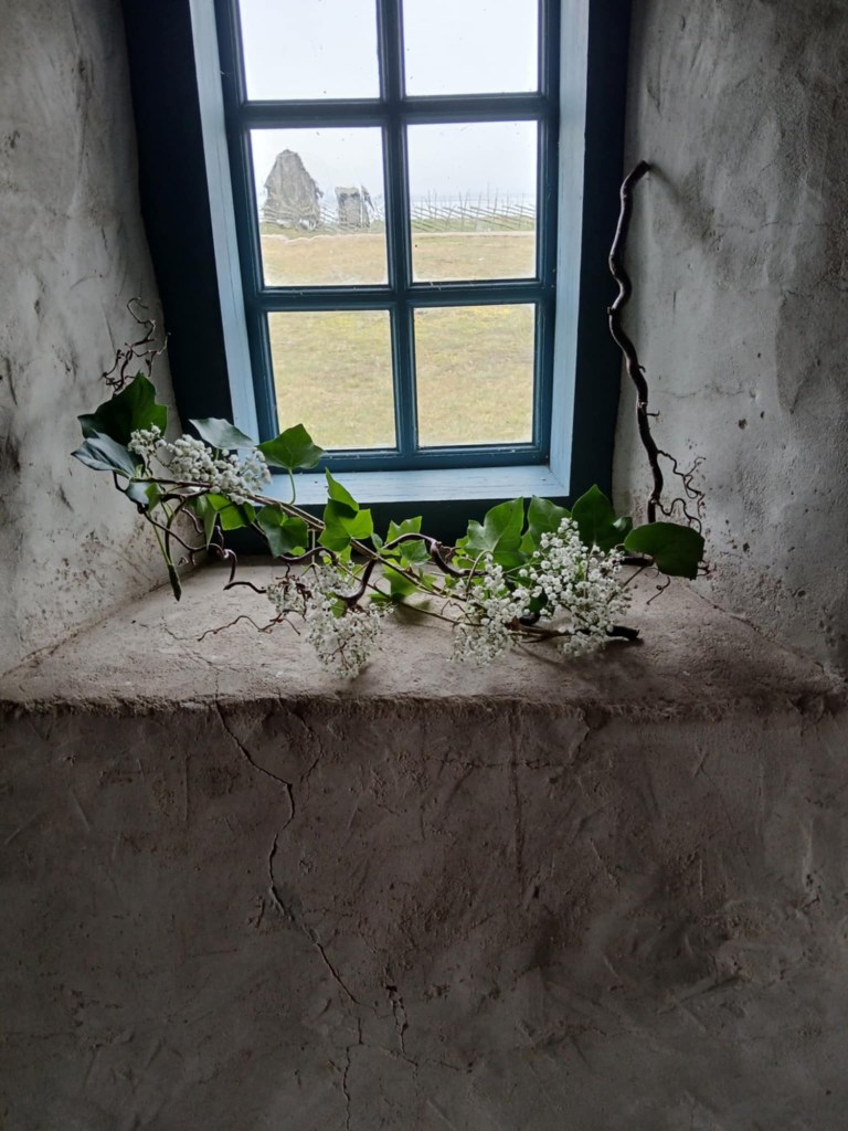 Suderviljan har dekorerat kapellet i Kovik med dessa vackra blomsterarrangemang inför ett bröllop som är idag, 12 juli 2025.