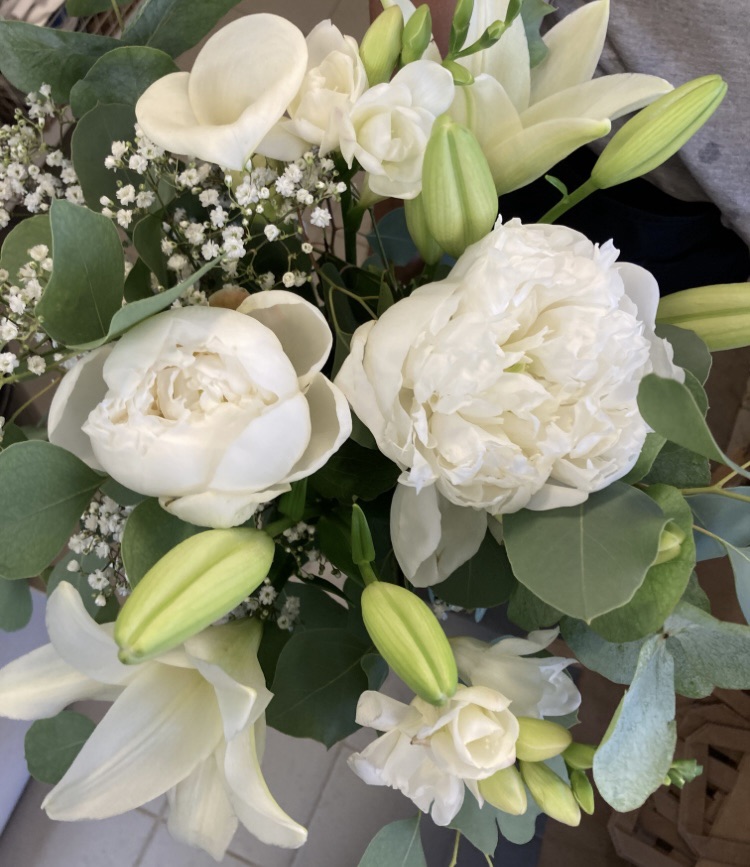 Brudbuketten och corsagen gjordes av Rickard Sandelius 🙂