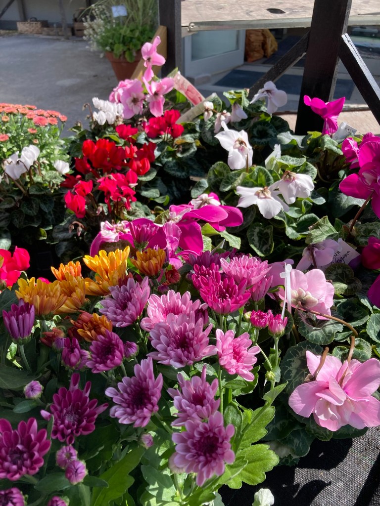 Vi har bland annat fina pelargoner, Surfinia, nejlika, Marguriter i kruka och blåklint i snitt 🙂 Cosmos, chokladblomma, kom hem nu i veckan.